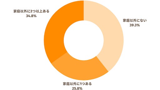 「家庭以外にない」が最も多く、39.3%、「家庭以外に2つ以上ある」が34.8%、「家庭以外に1つある」が25.8%となりました。