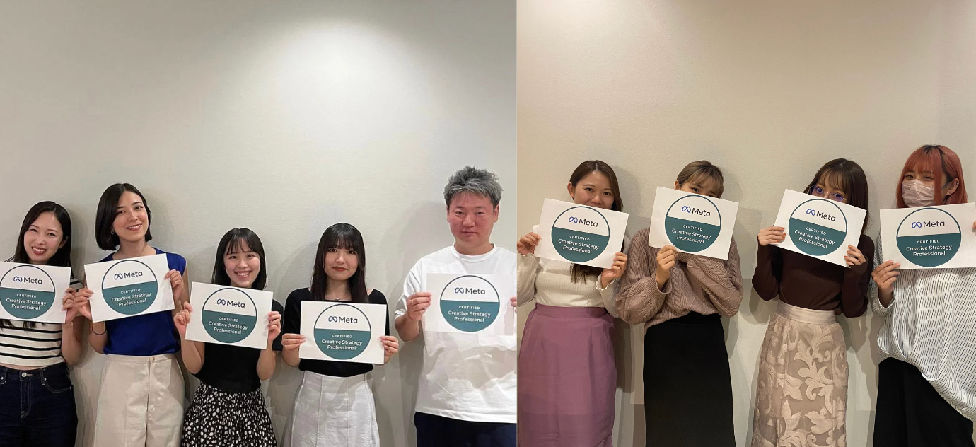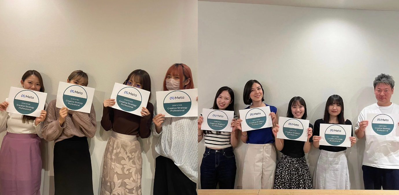 「全員が会社の顔」を目標に掲げる当社では、全マーケティング社員が「Meta認定クリエイティブ戦略エキスパート」の個人資格を保有しています。