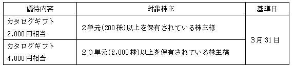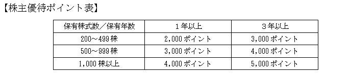 当社は、株主の皆様が保有する株式数及び保有期間に応じて、株主優待ポイントを下記のとおり贈呈いたします。