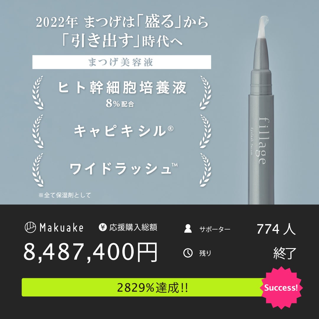 クラウドファンディングではデイリーランキング1位を獲得し、完売メニューも|ヒト幹細胞培養液を高濃度(8%)配合した まつげ美容液が一般発売開始