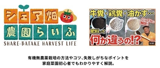 『シェア畑-農園らいふ-』は、アグリメディアが首都圏と関西の118カ所で運営するサポート付き貸し農園「シェア畑」の公式YouTubeチャンネルです。「シェア畑」で野菜づくりを指導している「菜園アドバイザー」が出演し、有機無農薬の野菜づくり方法、コツなどを配信しています。