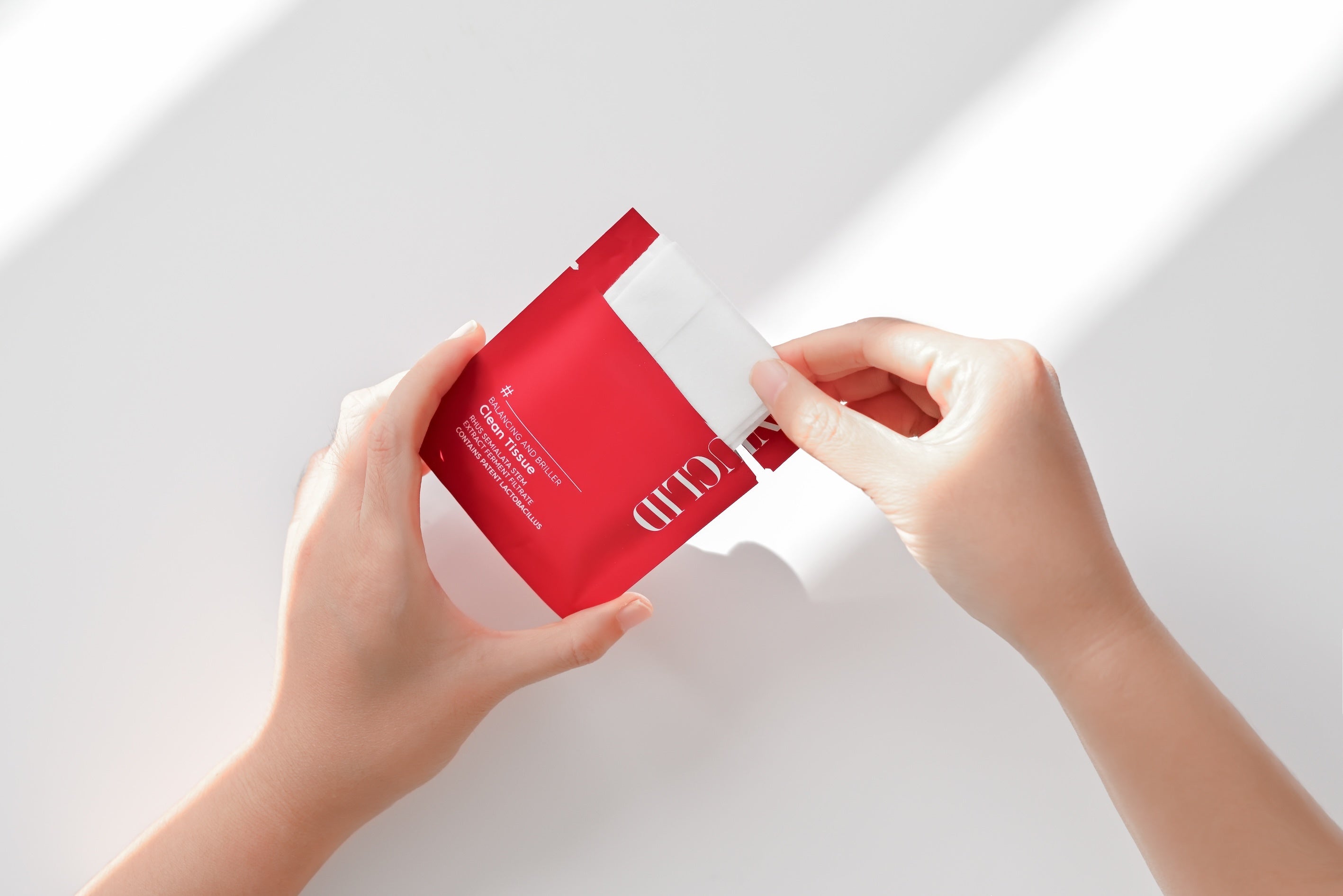 ニュークリッドクリーンティッシュは、女性のデリケートゾーンケアのために特別に開発されたクリーンティッシュです。アルコールや遺伝子組み換え原料、塩素系漂白剤など47種類の有害物質のような刺激の強い成分を含まず、幼児用のスキンケア製品にも使われるもっとも安全性の高いEWGグリーン等級で、イギリスのビーガンソサエティー 認証の肌に優しいビーガン素材なので敏感な肌にも優しい処方となっています。持ち運びに便利なパッケージ設計で、外出先でも手軽に使用できるため、女性のライフスタイルに溶け込むアイテムとなっています。