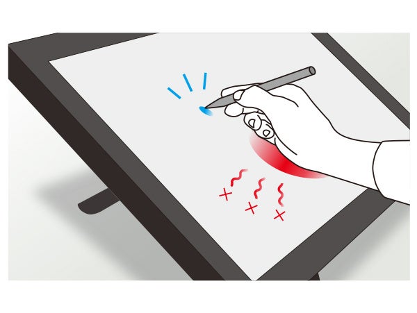専用スタイラスを感知して、手の側面などスタイラス以外のタッチを完全に無効化し、誤動作、誤入力を防止します。