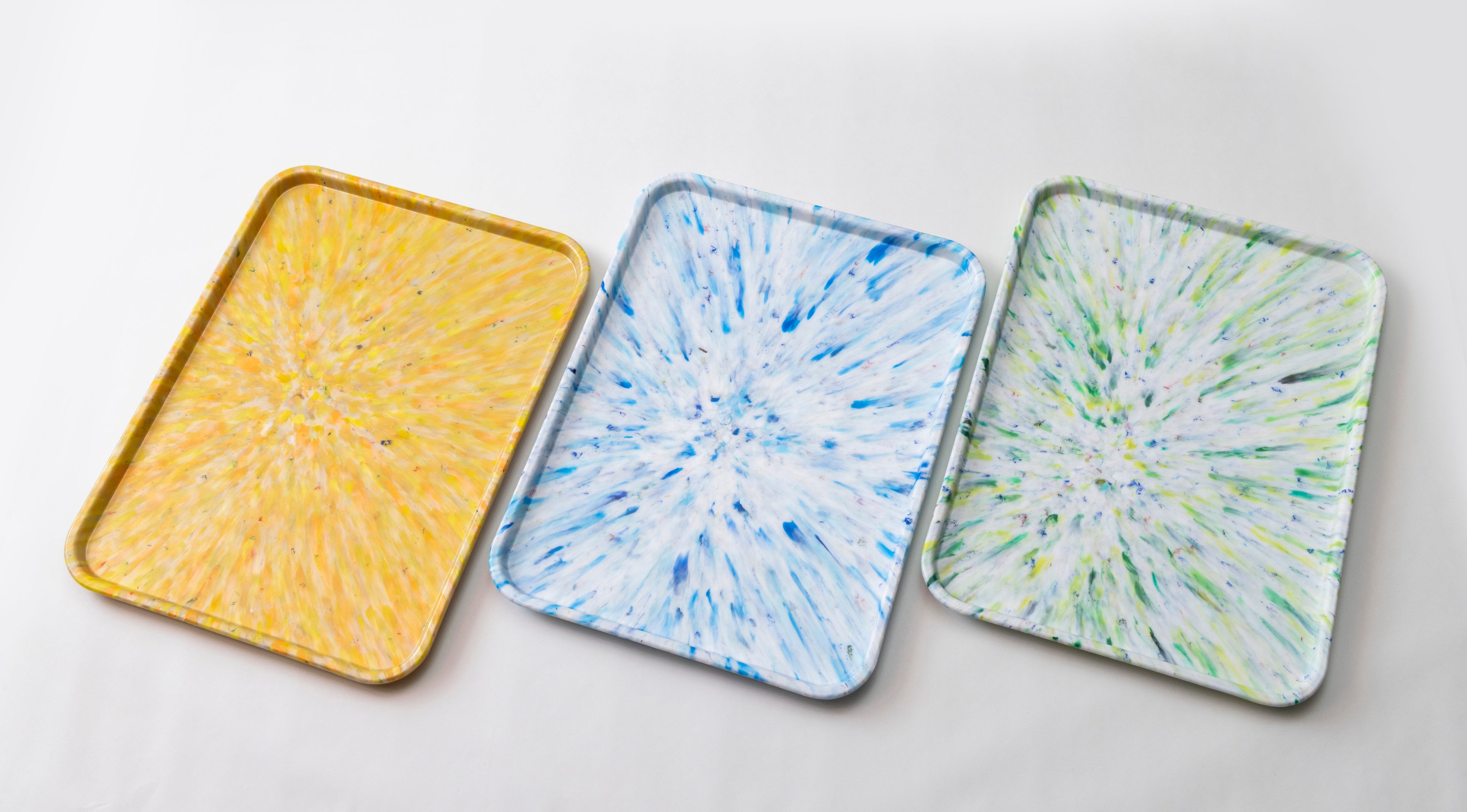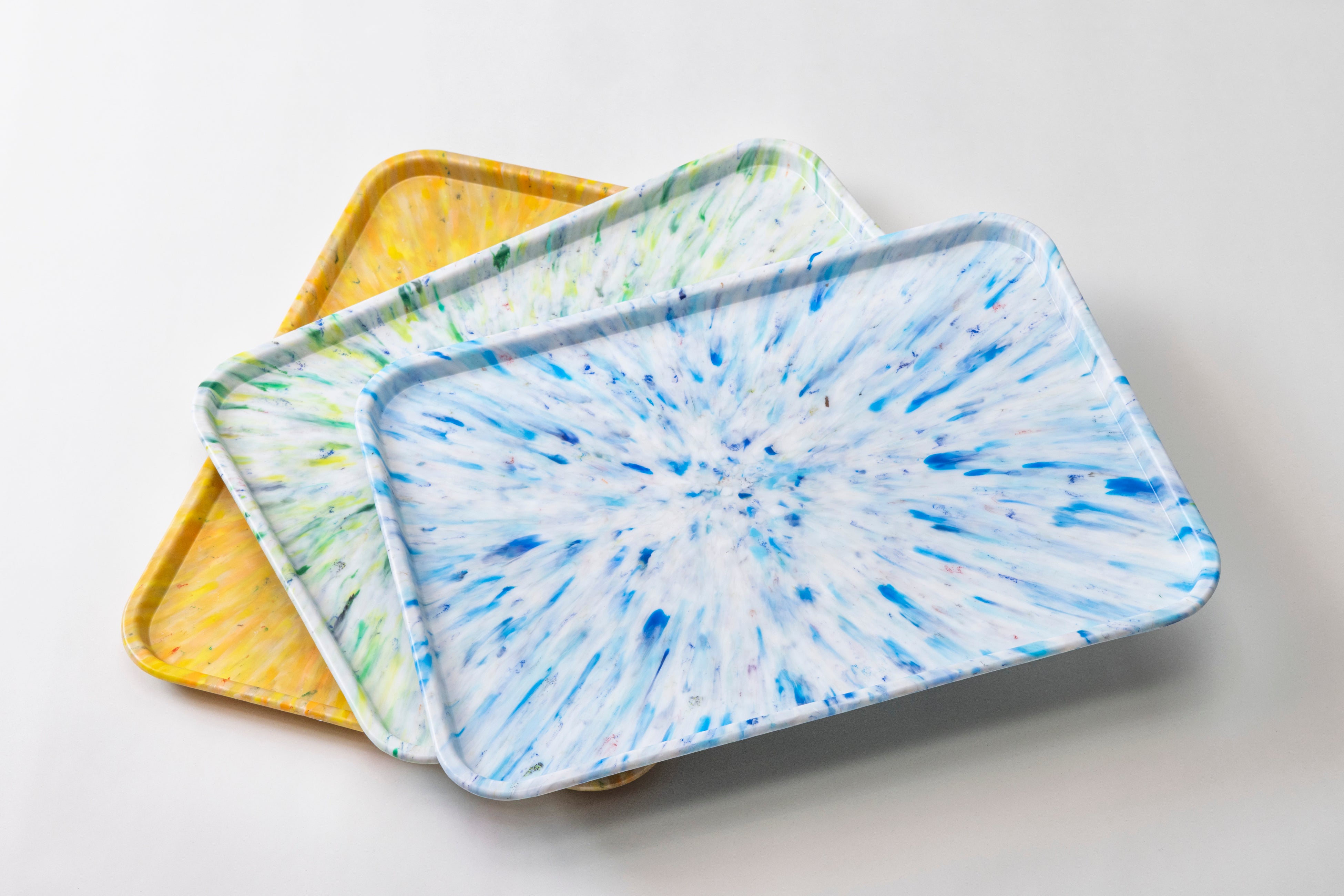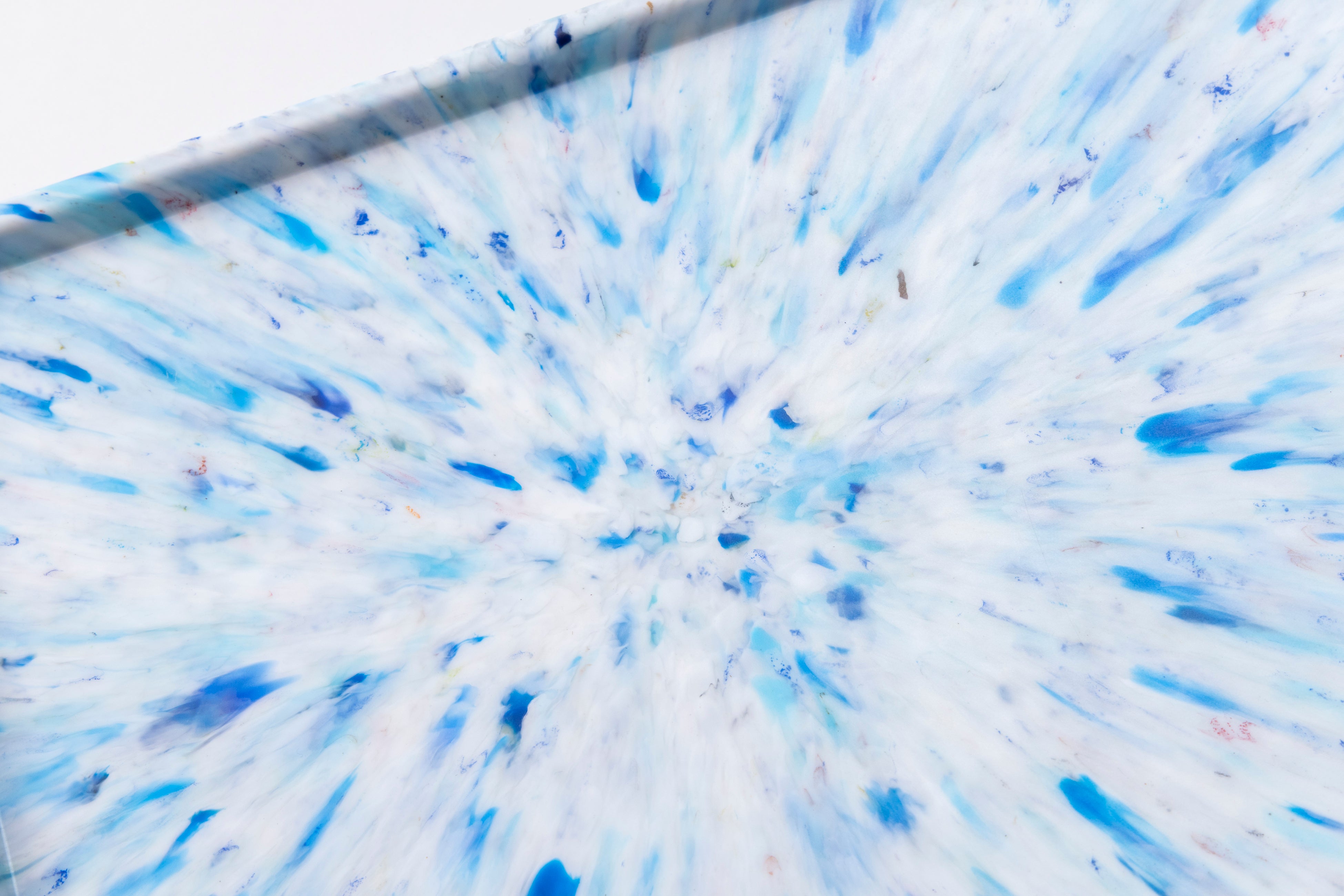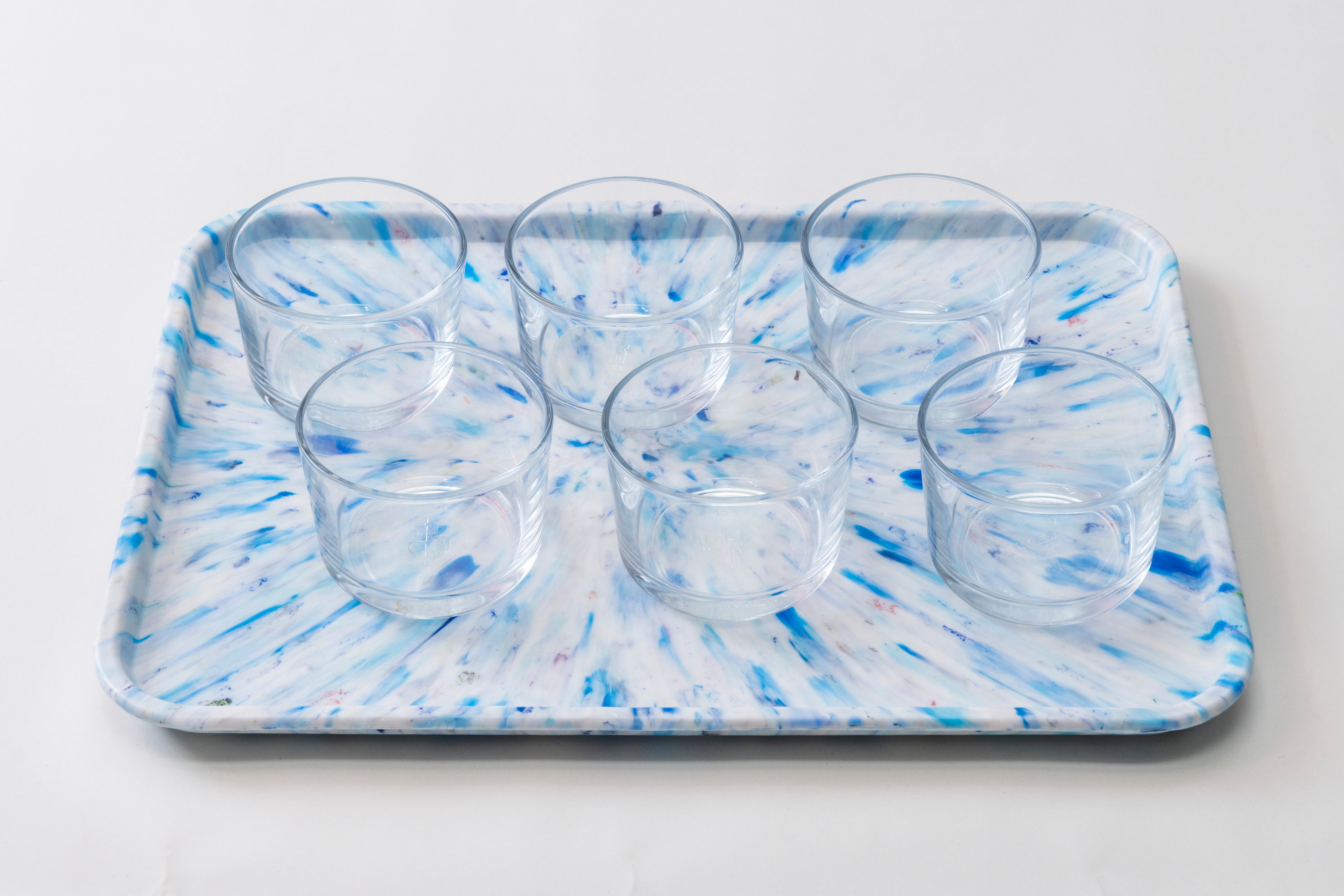 一点ずつ異なるマーブル模様は、包まれたキャップや海洋プラスチックなどの素材の色や形をそのまま活かしており、リサイクル素材ならではの個性を表現しています。