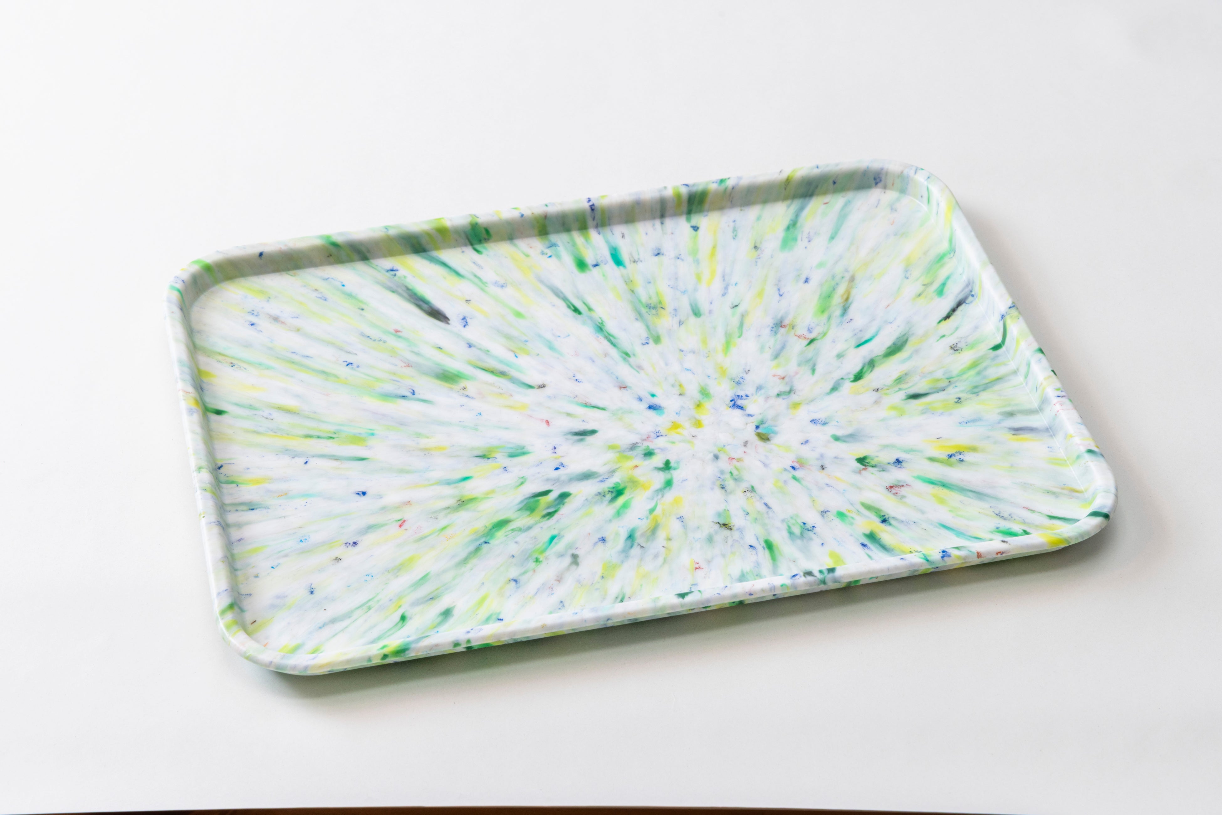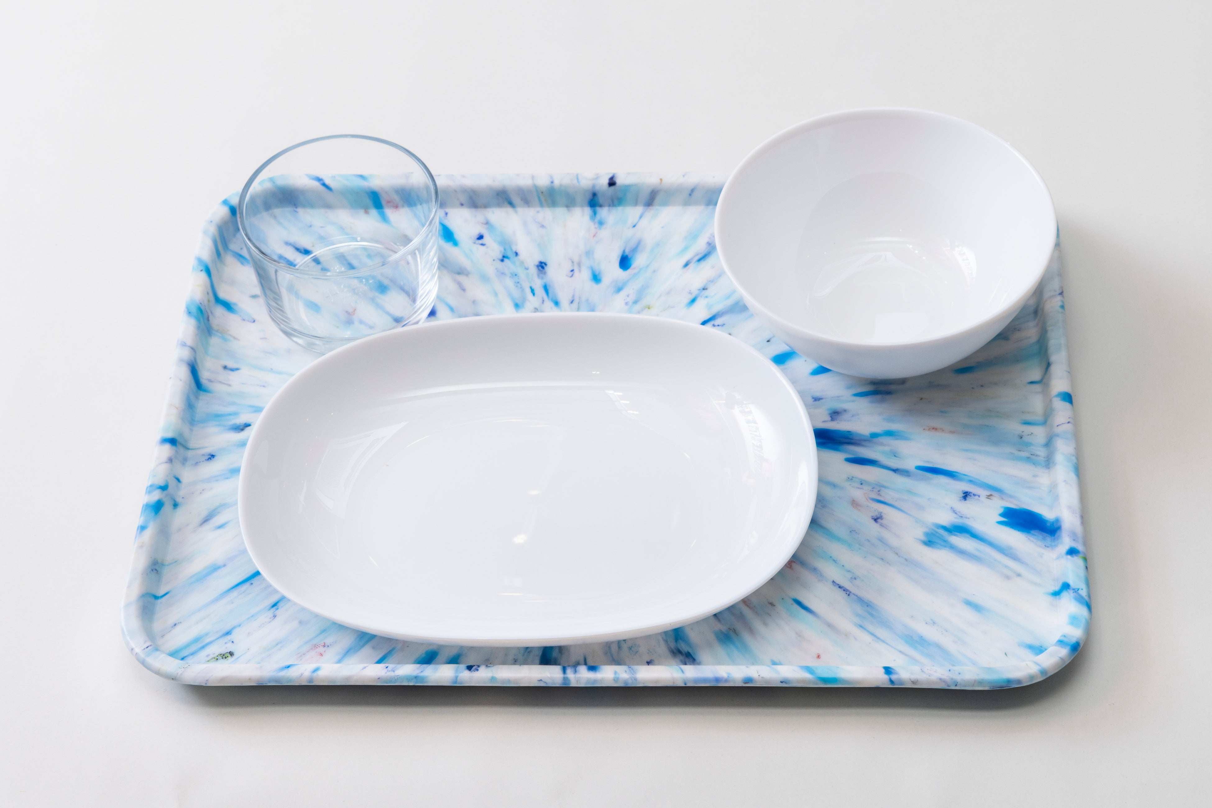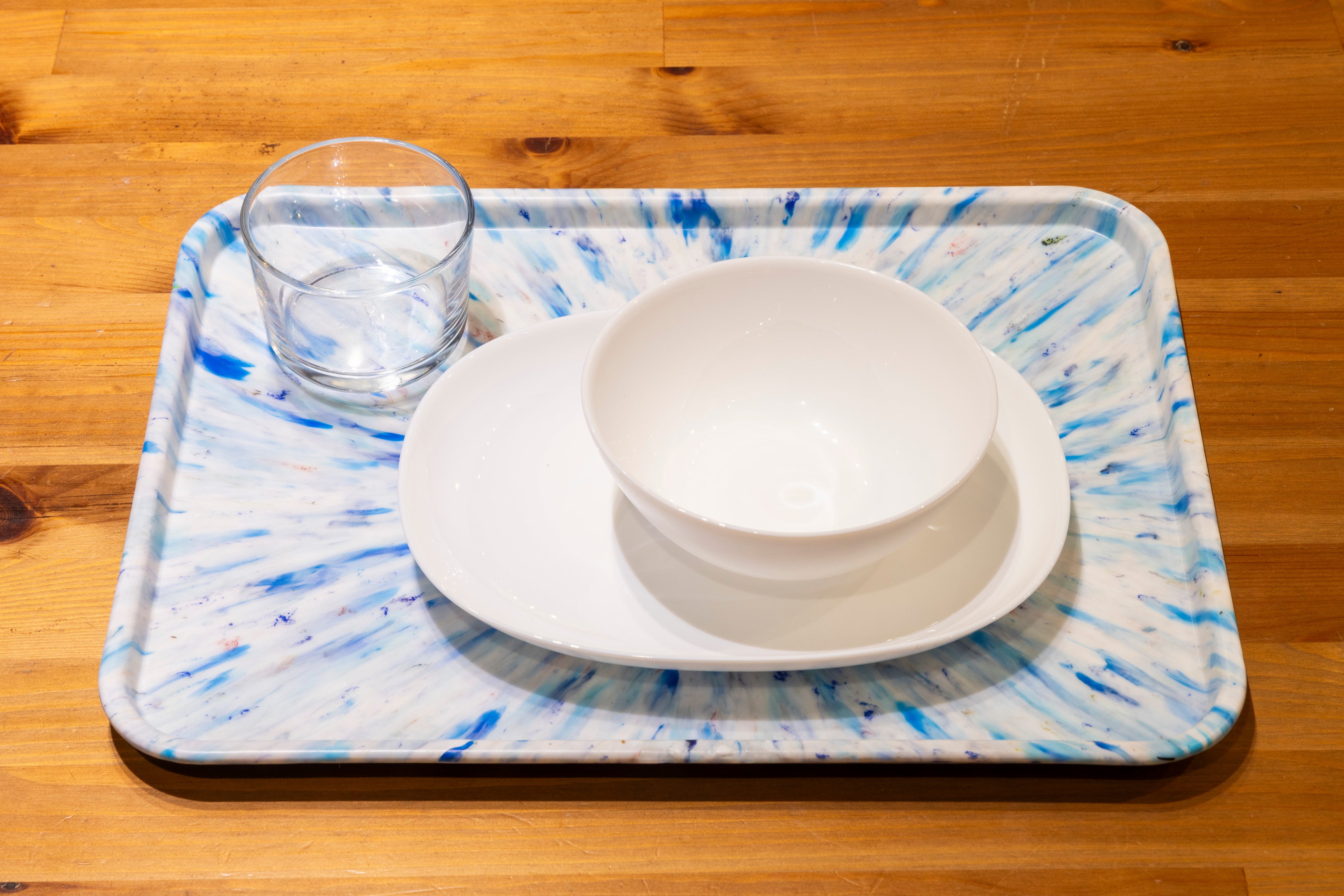 トレーは、特殊な成形技術により、素材全体を包むフィルムで表面が覆われているため、使用者が素材に直接触れることなく、衛生面を気にする人でも安心して使える仕組みになっています。