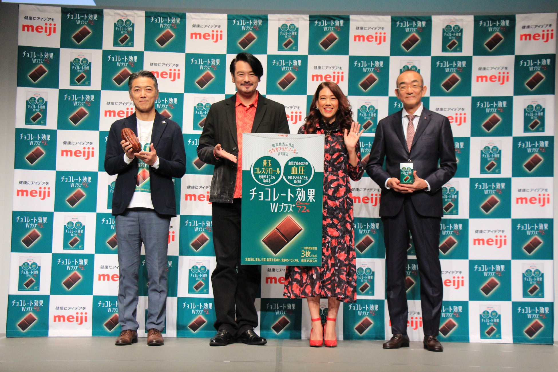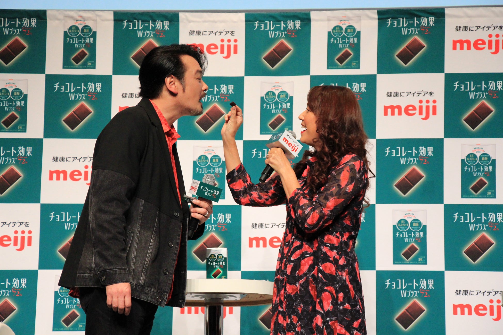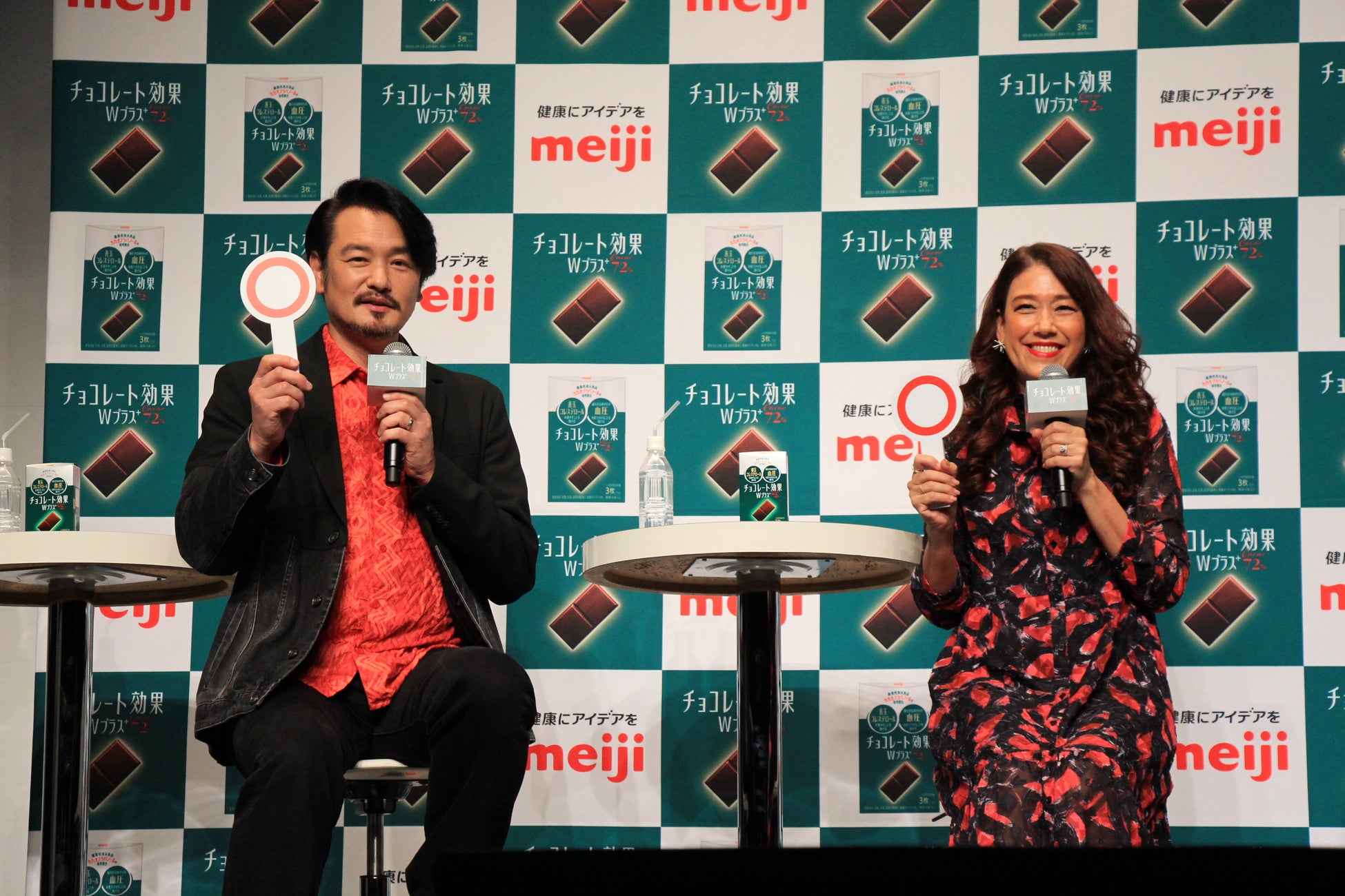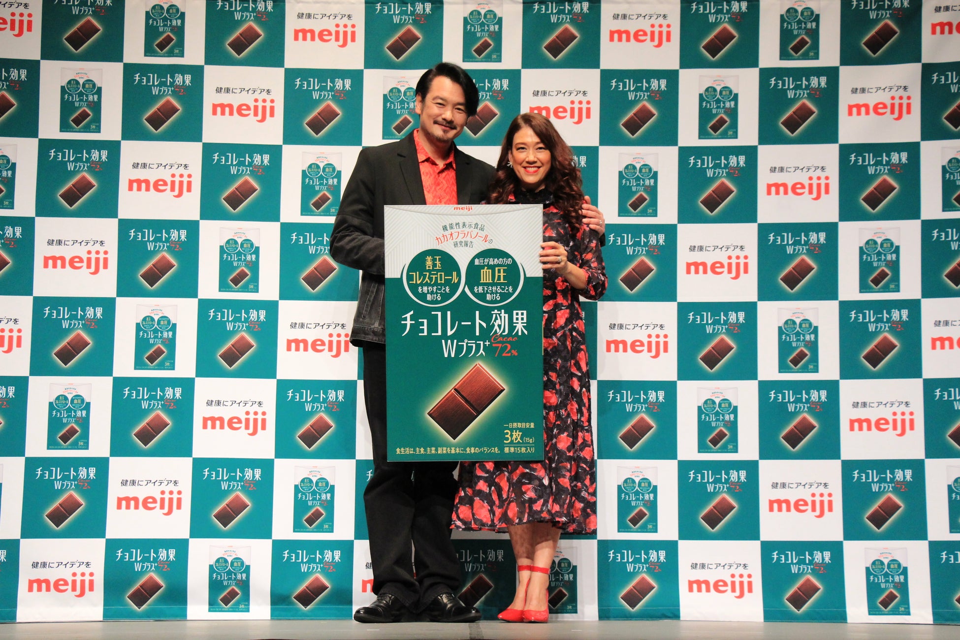 <「いい夫婦の日」イベント>明治が 「チョコレート効果WプラスCACAO72%」の魅力を説明小田井涼平(元純烈)&LiLiCo夫妻がゲスト登壇