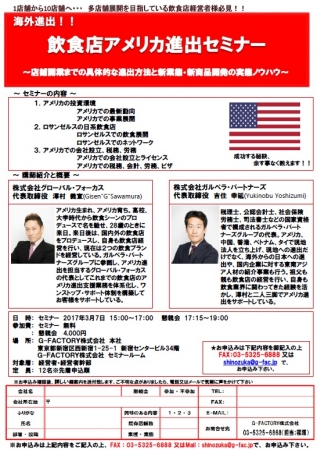 3月7日、「飲食店アメリカ進出セミナー」を開催いたします。