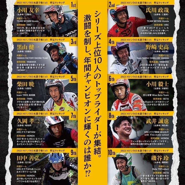 トライアルの国内競技人口は数千人以上。その中でも技術の高さによって階級(ライセンス)が分かれており、世界選手権に通じる最高峰ライセンス「国際スーパーA級」は全国でもわずか20名程度。