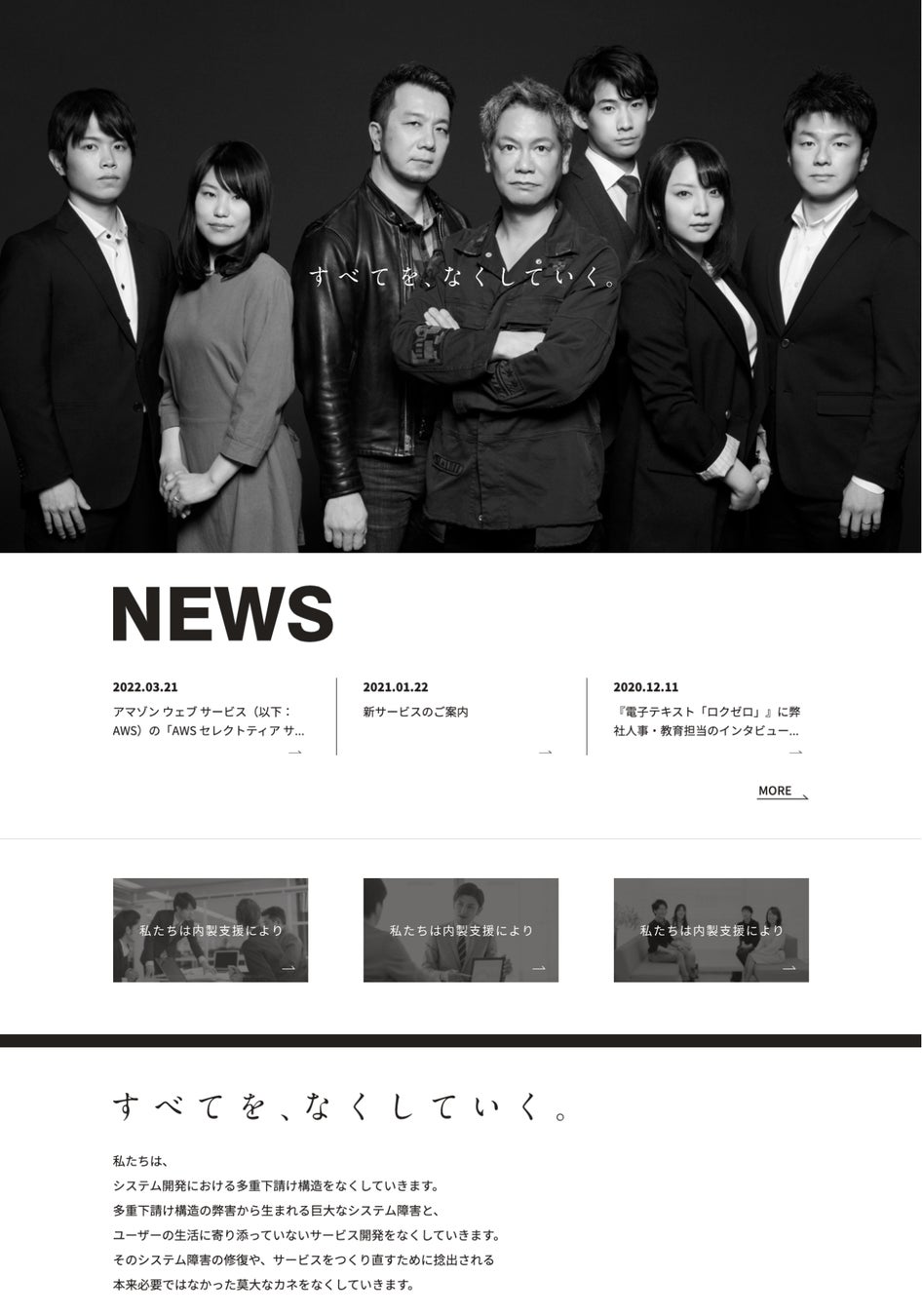 ミッションステートメント「すべてを、なくしていく。」をコンセプトに、コーポレートサイトを制作・公開
