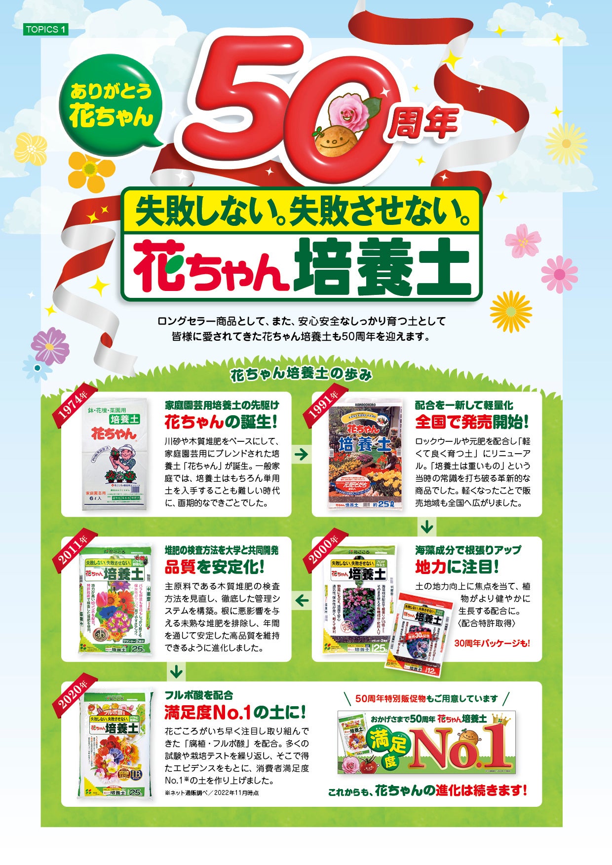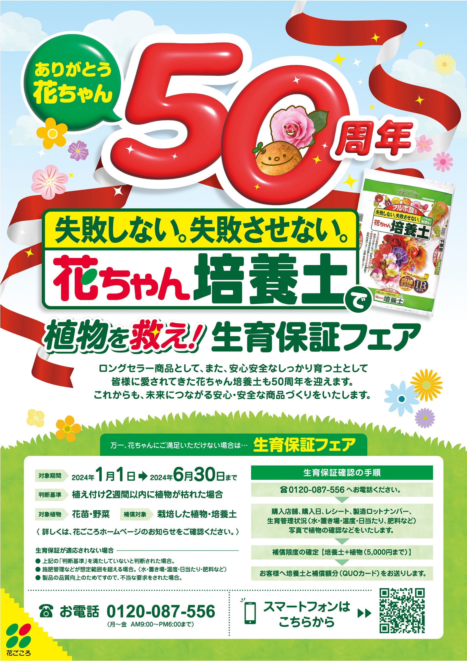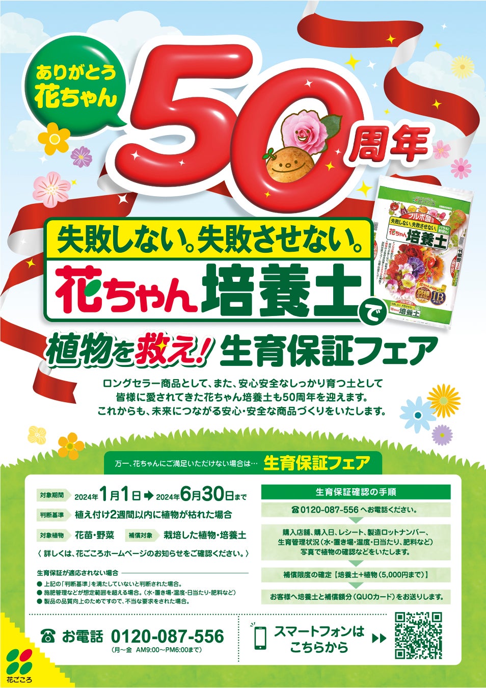 おかげさまで50周年 花ごころ「花ちゃん培養土」感謝を込めて生育保証フェアを実施