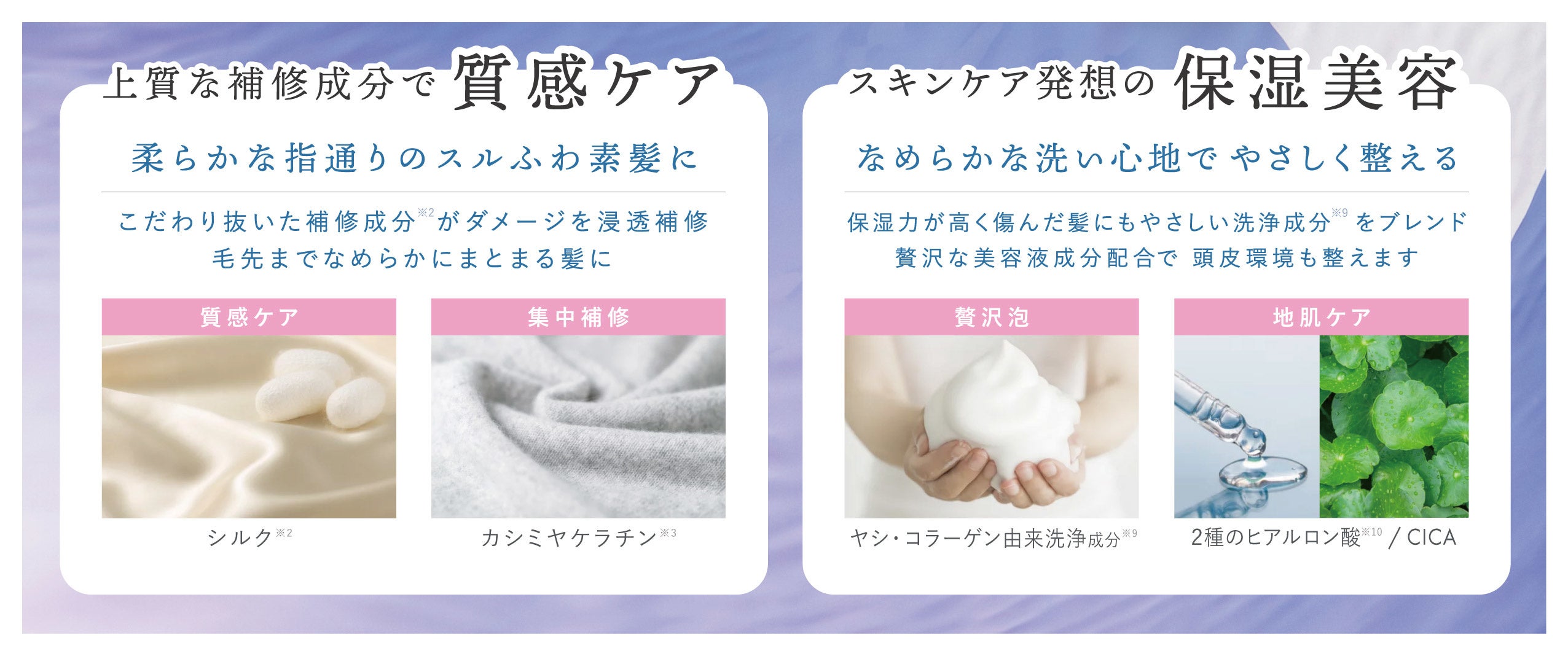 ・シルク※2&カシミヤケラチン※3でとろける質感※1、感動の指通りへ