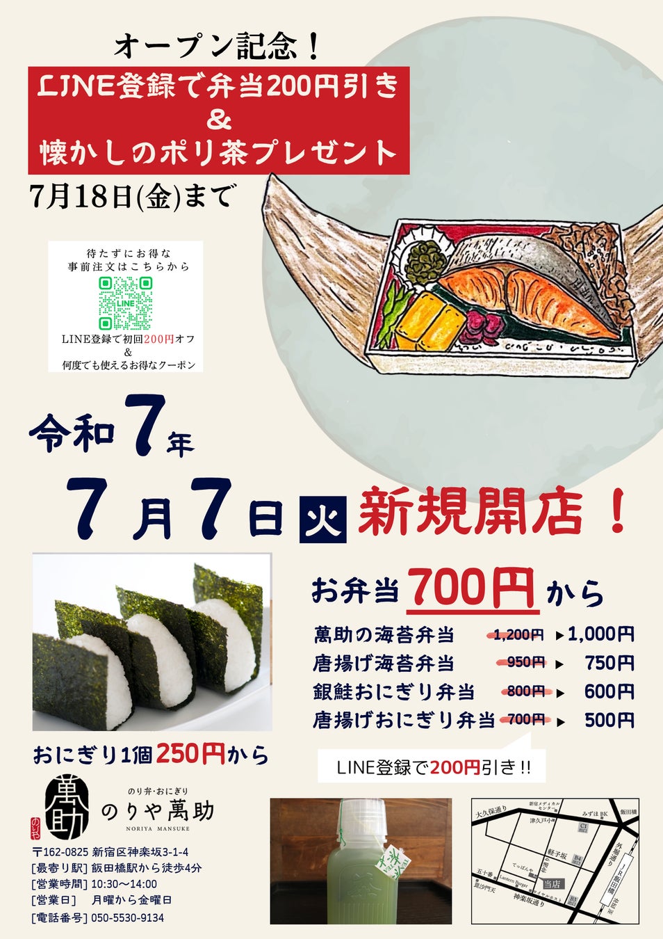 神楽坂に贅沢海苔弁とおにぎりの専門店「のりや萬助」が誕生