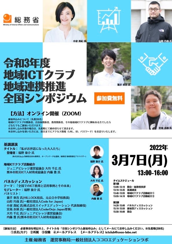 総務省が地域ICTクラブと地域の連携促進を図る全国シンポジウムを3月7日に開催!