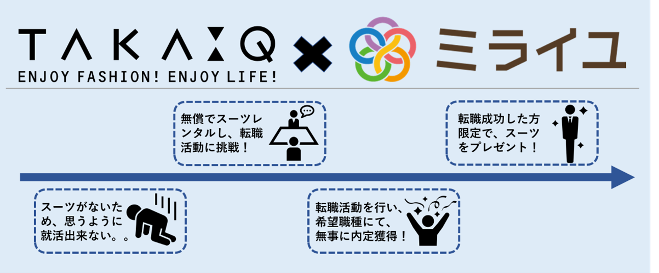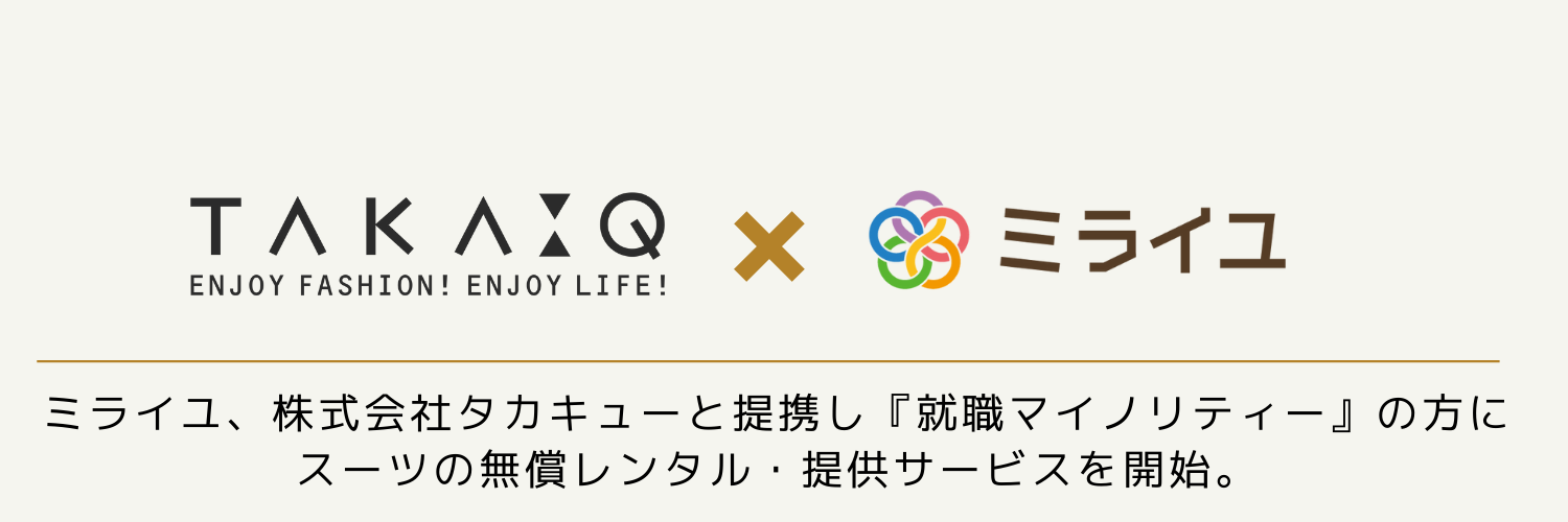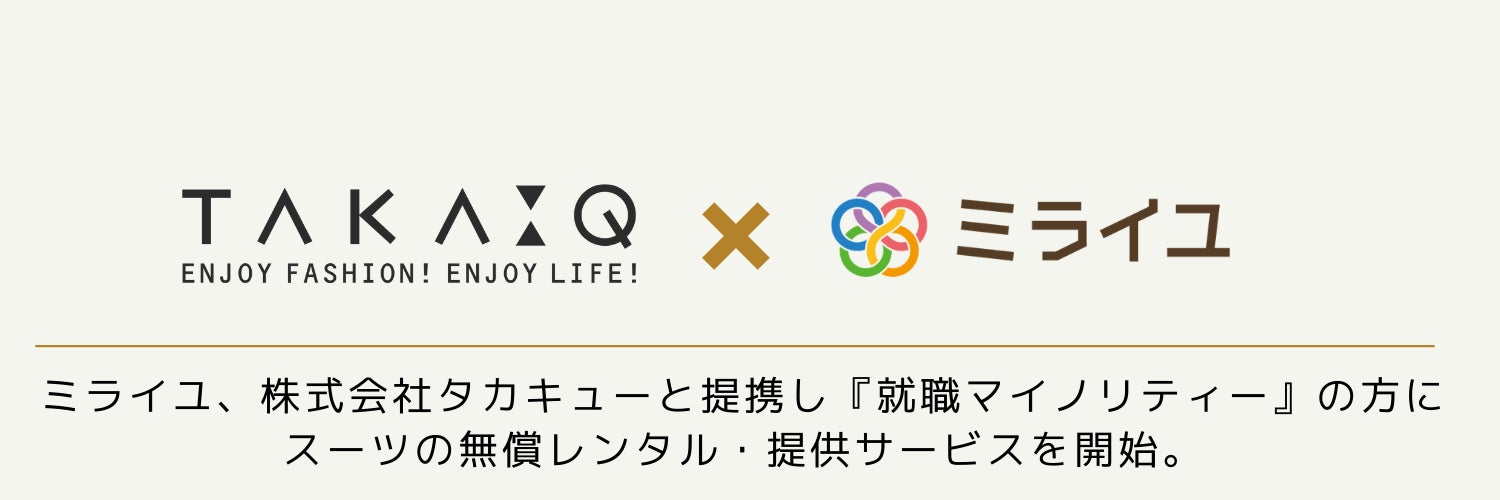 学歴や経歴等で就職先の選択肢が制限される『就職マイノリティー』の方向けにキャリア支援を展開するミライユ、株式会社タカキューとスーツレンタル・提供サービスの提携を開始。