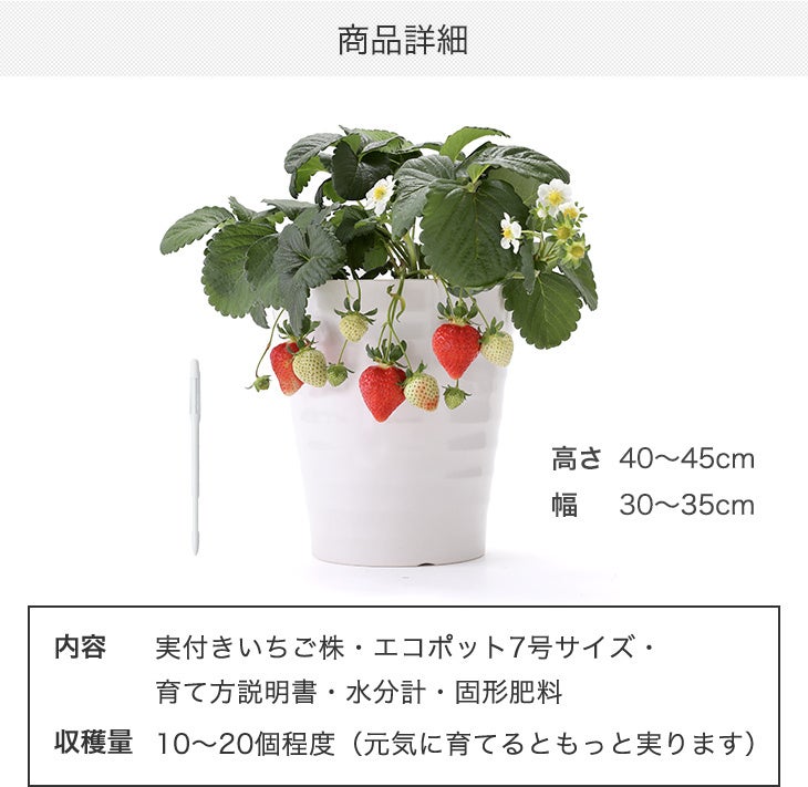 小さな苗ではなく、いちごの実がたわわについた状態でお届けするため、ご購入後すぐに美味しいいちごを召し上がることができます。