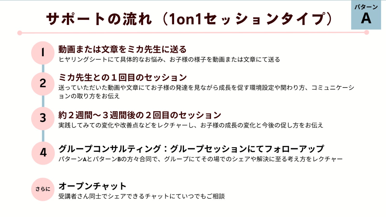 グループコンサルティング:同じ悩みを持つ保護者同士で情報をシェアし、解決策を見出す場としてグループセッションを開催。
