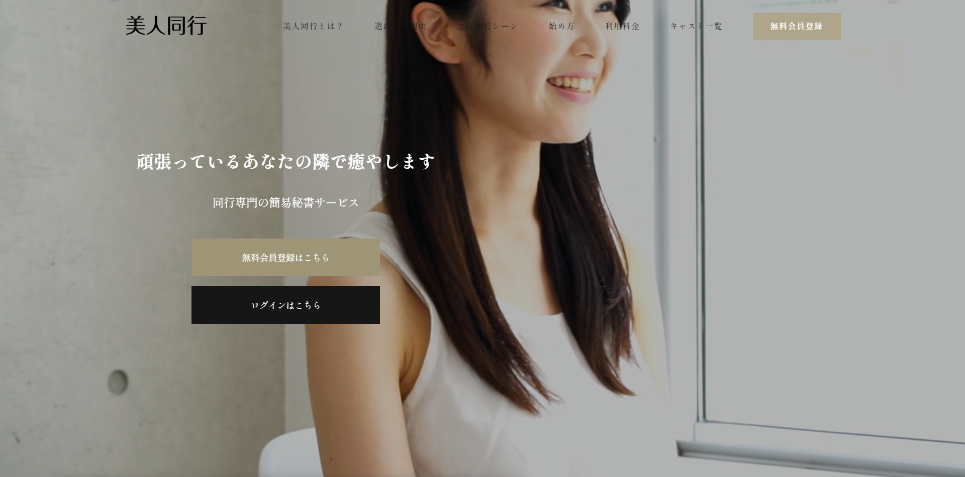 長年、経営者の支援を行っている当社は、中小企業の社長様や役員様から「秘書が欲しいけど雇えない」「必要な時だけ秘書を雇いたい」という声を数多く頂戴し、様々なビジネスの場に同行する簡易秘書として、同行専門の秘書サービス「美人同行」をリリースする運びとなりました。