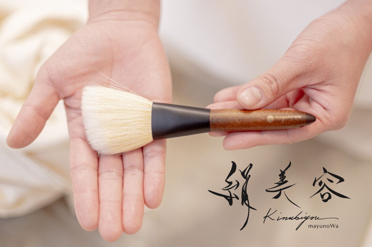 絹美容は、千年の歴史を持つ日本の絹文化と180年以上の伝統を誇る熊野筆の職人技術を融合させた匠の道具で施術する、世界でも類を見ないスキンケアメソッドです。