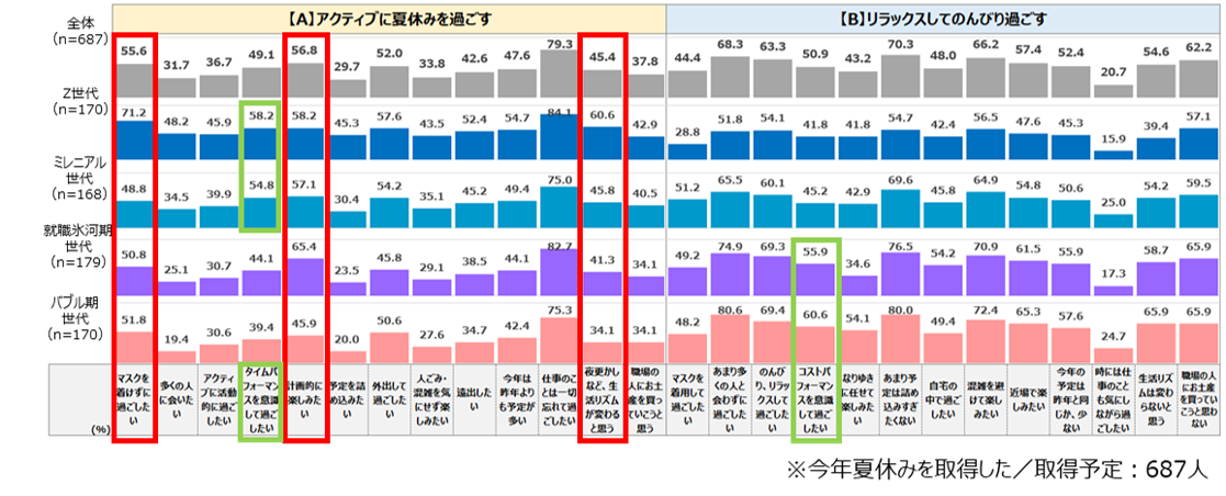 ・Z世代では「マスクを着けずに過ごしたい」(71.2%)が他の世代よりも高率。