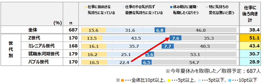 若年層は「タイパ」を、ミドルシニア層は「コスパ」を意識 ~「宿泊をともなう国内旅行」がトップ、外でアクティブに過ごす傾向~「夏休み後の仕事はやる気が出ず憂鬱」が3割で、若年層になるほど高い~