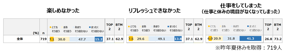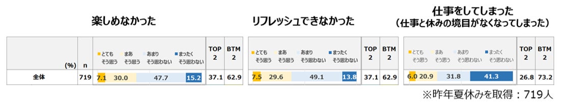 ●昨年の夏休みを「楽しめなかった」人は37.1%と、一定数がコロナ禍の夏休みを楽しめなかった。