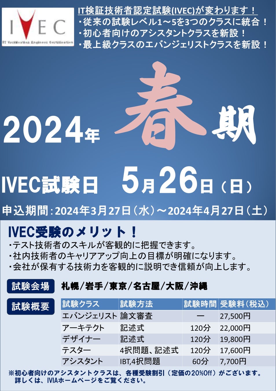 詳しくは、IVIAホームページのIVEC試験 2024春期をご覧ください。