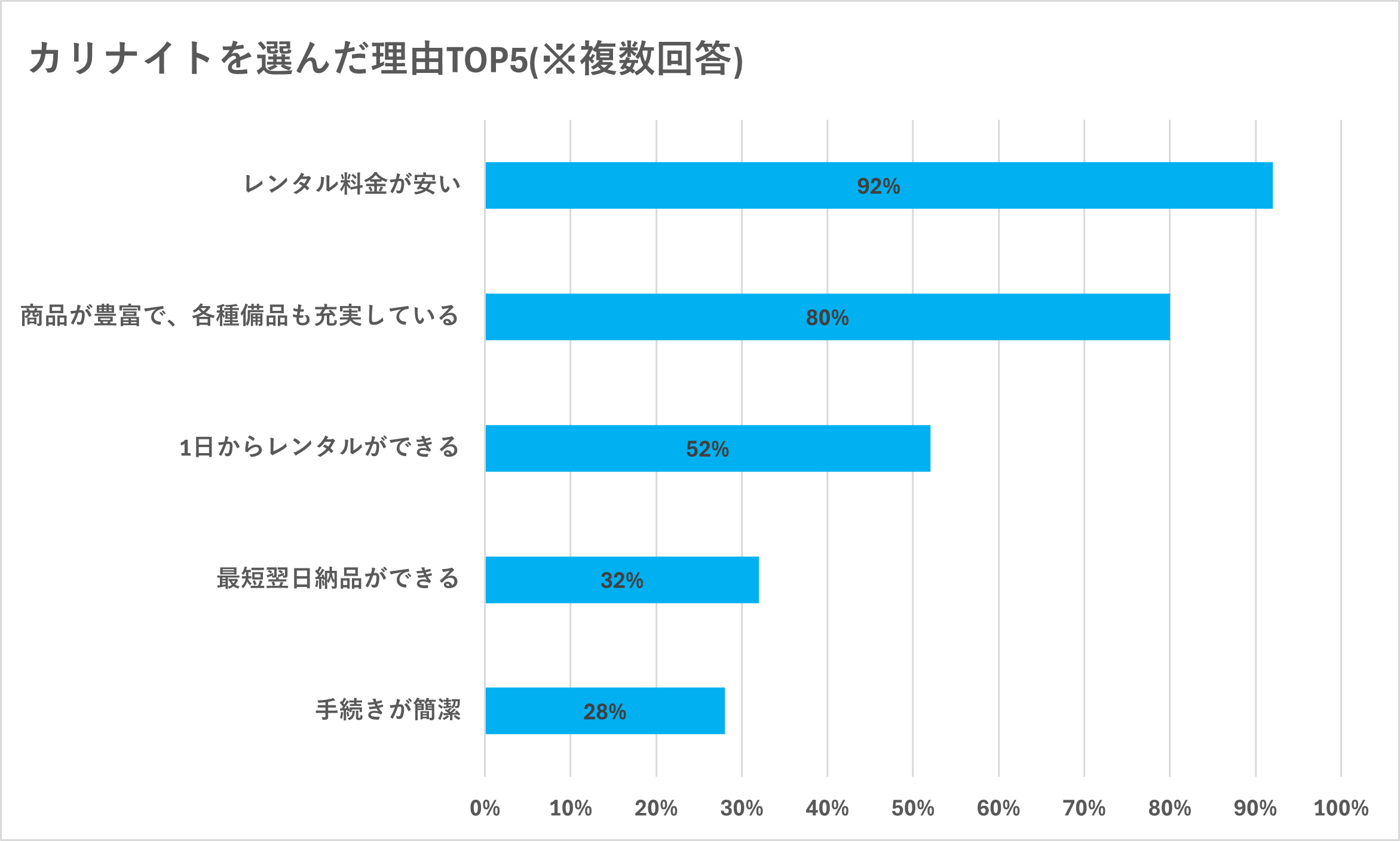 2024年4月に実施したレンタル利用者を対象にしたアンケートでは、多くの方が「カリナイト」をレンタルサイトとして利用していただいていることがわかりました。