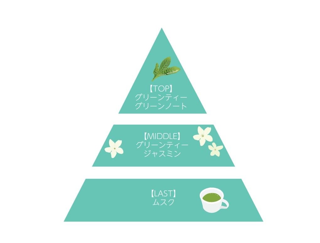 新登場となる香りは、これからの季節にもぴったりの瑞々しさのあるグリーンティーの香りとなっています。