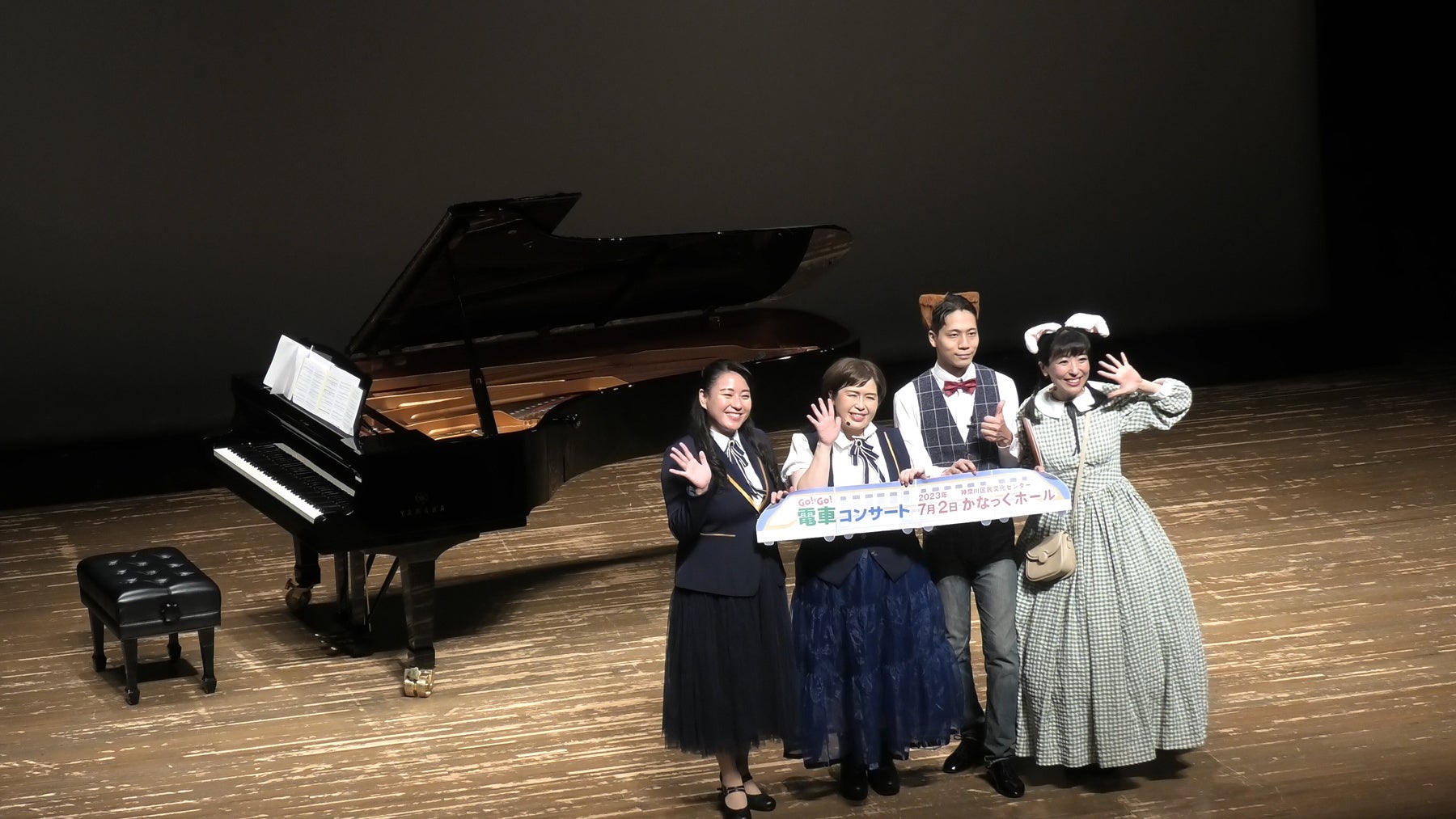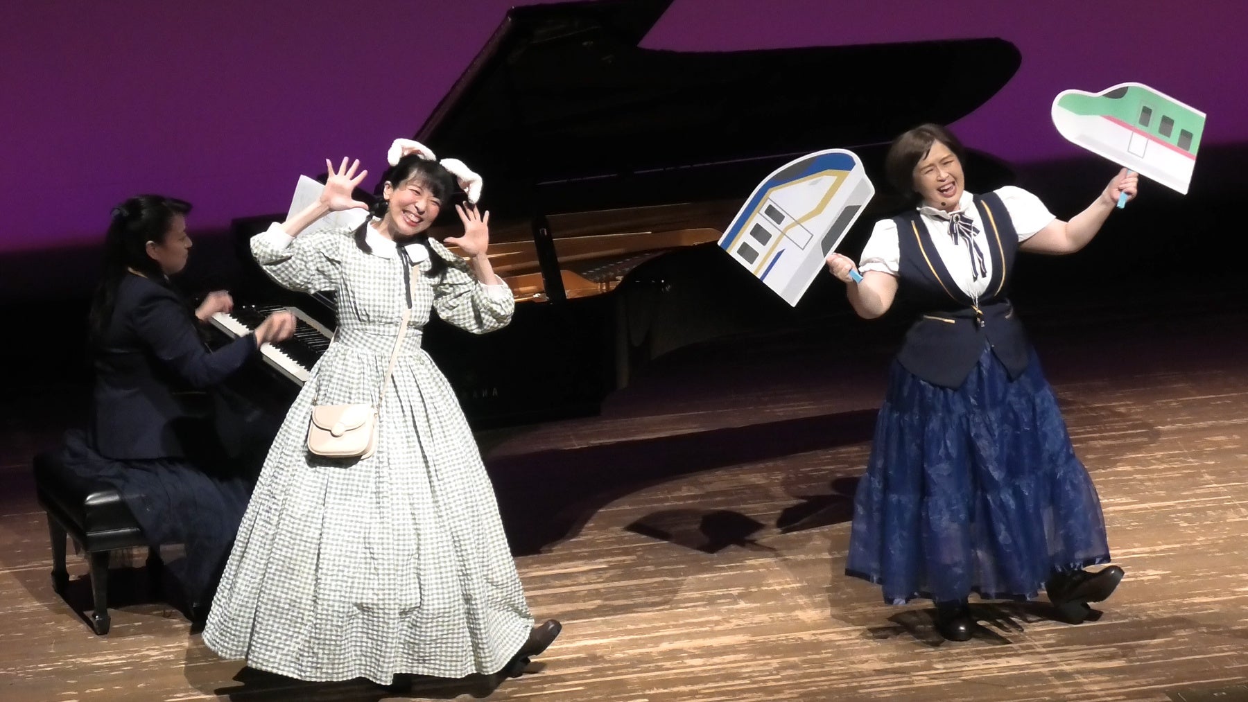 COCOHEは子供向けのコンサート企画を年間30~50公演自主開催しており、この「Go!Go!電車コンサート」は団体の代表でプロデューサーを務める内田の息子が鉄道好きだったことから制作されれ2017年から続く人気コンサート企画です。出演は初演から「Go!Go!電車コンサート」を支えてきたピアニストの嘉山晶子と歌手UPNに加え、元劇団四季で活躍したミュージカル女優の池田祐子、そして毎回変わるシークレットの男性ゲストによる疾走感のあるステージとなりました。今回のシークレットゲストにはオペラ歌手でバリトンの山田健人さんが登場。会場美声が響き渡りました。