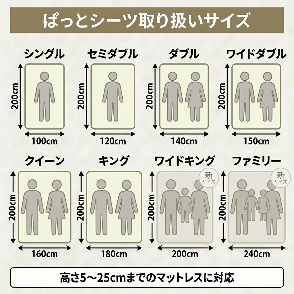 そこで当社では、既存の防水ボックスシーツシリーズに、より大きなベッドサイズに対応できるワイドキング200×200cm と ファミリー240×200cm を追加し、より多くの家庭で使いやすいラインアップへ拡充いたします。