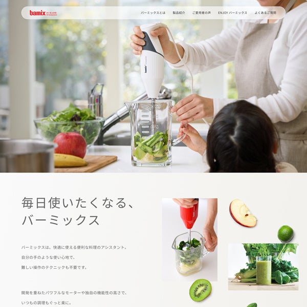 商品情報を全て見直し再編集するとともに、新規の画像やをYouTubeコンテンツを追加し、おすすめのポイントを明確化しました。新規の購入を考える方の興味関心に応えるよう工夫し、バーミックスの魅力を伝える内容となっています。