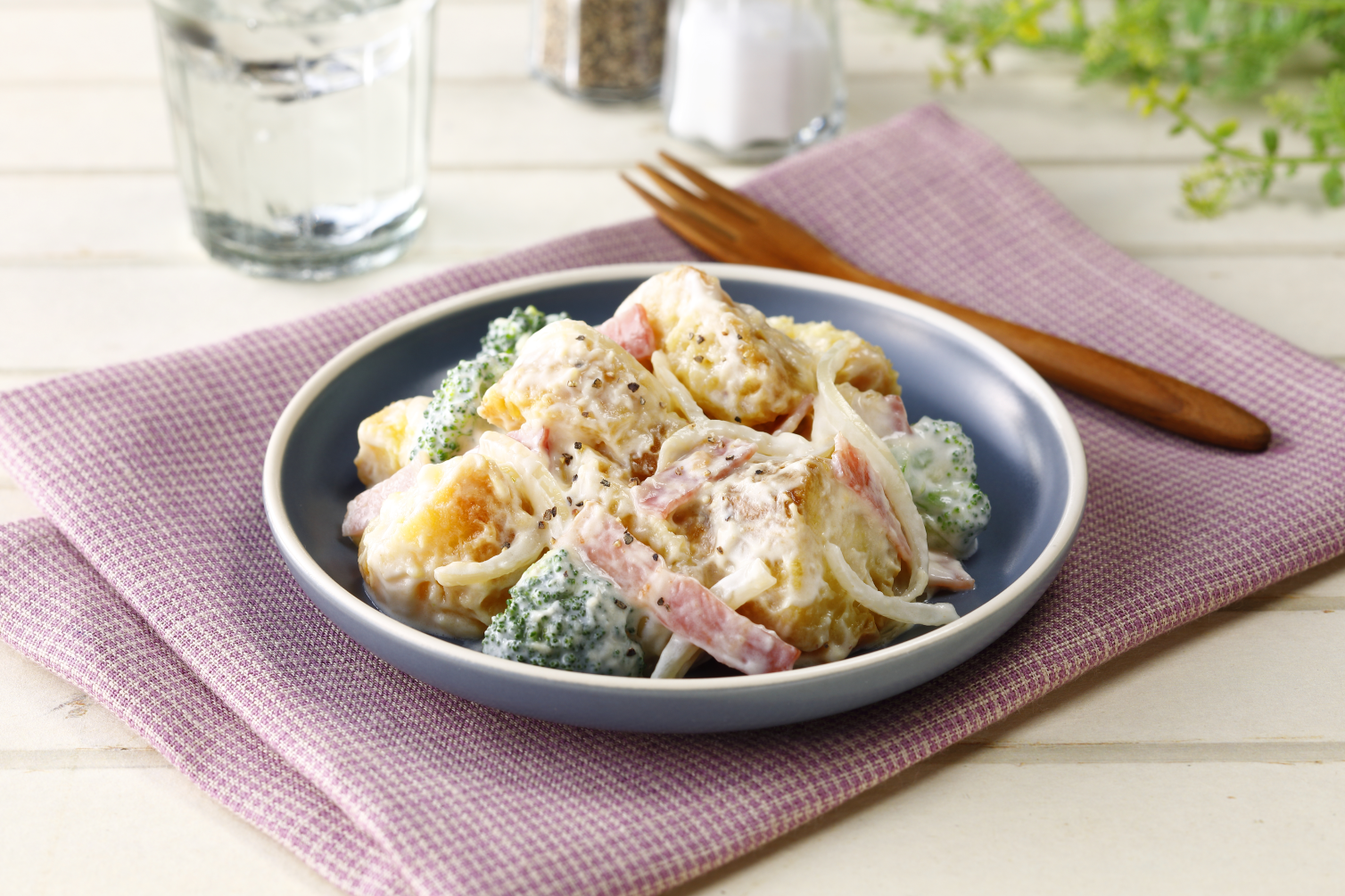 焼き芋には食物繊維が豊富に含まれており、善玉菌を含むヨーグルトと一緒に食べることで、腸内環境を整えるのにおすすめの食べ合わせとなっています。サラダの中に入っている玉ねぎにも食物繊維やオリゴ糖が含まれているので、一緒に腸内環境を整えてくれます。ブロッコリーも食物繊維を多く含む食材です。
