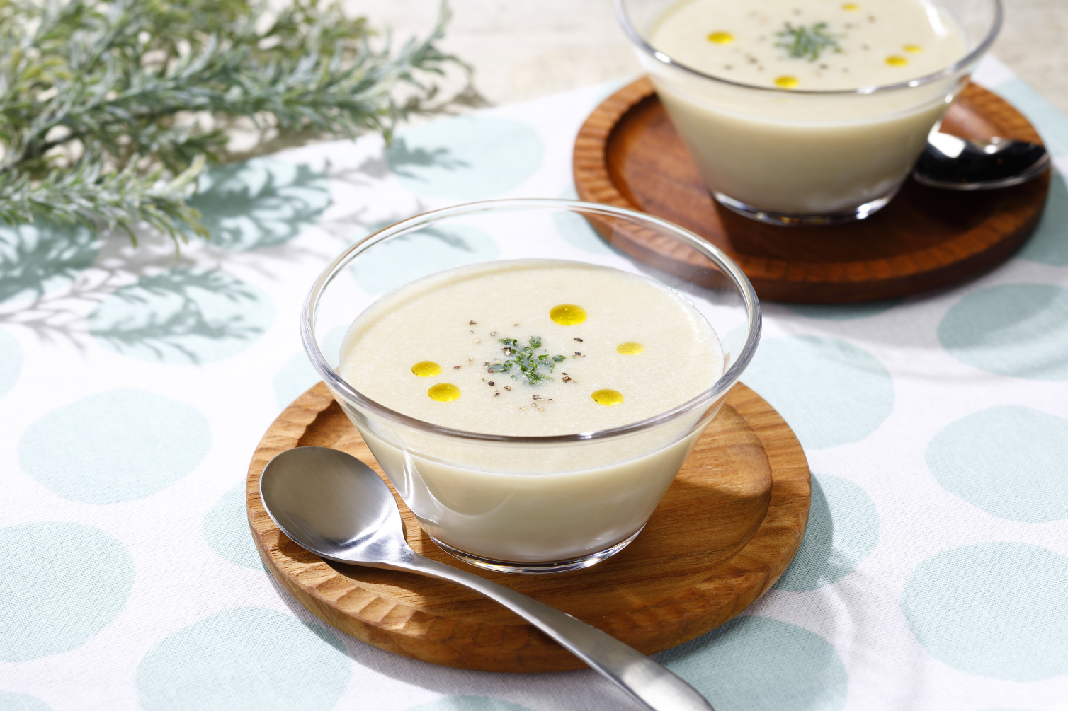 これからの時期、大量に汗をかくと、水分とともに体の浸透圧を調整しているナトリウムとカリウムも失われます。さつまいもや豆乳にはカリウムが豊富に含まれており、スープは水分とナトリウムを補給するのに最適です。暑さで食欲が落ちている時にも食べやすいメニューです。