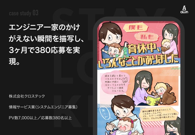 エンジニア一家のかけがえない瞬間を描写し、3ヶ月で380応募を実現。