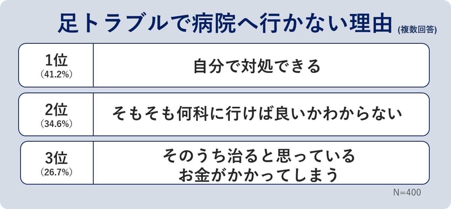 足のトラブルに「自分で対処」する人が58%と半数を超えるにも関わらず、