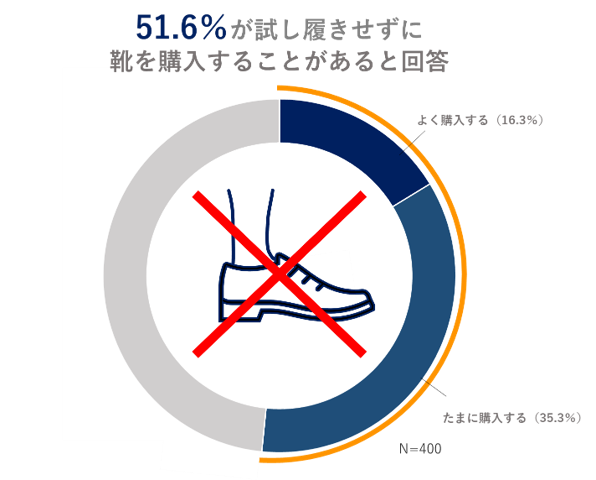 ③また、靴選びにおいて「試し履きをせずに靴を購入することがある」という人は51.6%。
