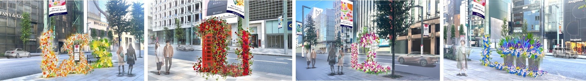 銀座で再び会えたことを歓迎するかのように、銀座の街中に設置されている「バス停」「ベンチ」「標識」「電話ボックス」「クリーンボックス」「街路灯」「仮囲い」などをフラワーアートで包み、街全体を花で彩ります。普段、何気なく街に設置してある物がフラワーアートによって少し違和感のある造形に生まれ変わることで新たな銀座の魅力を感じて頂ければと思います。