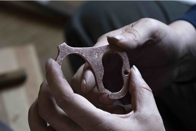 本プロダクツの特長は、新潟の伝統工芸“鎚起銅器”の技法を活かした職人の技を感じる仕上がりにある。鎚起銅器とは1枚の銅板をハンマーで叩いて日用品や芸術品を作る技法で、江戸中期から始まった新潟県燕市の伝統工芸。