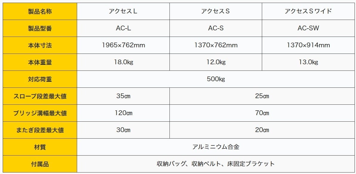 ― 対応荷重500kg、便利なロール収納。幅914mmの“アクセスSワイド”7月発売 ―