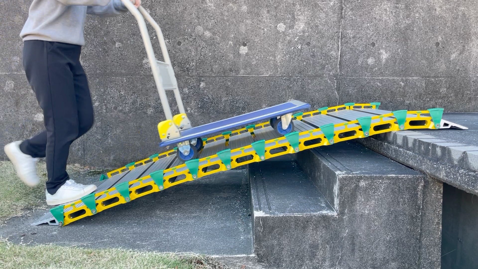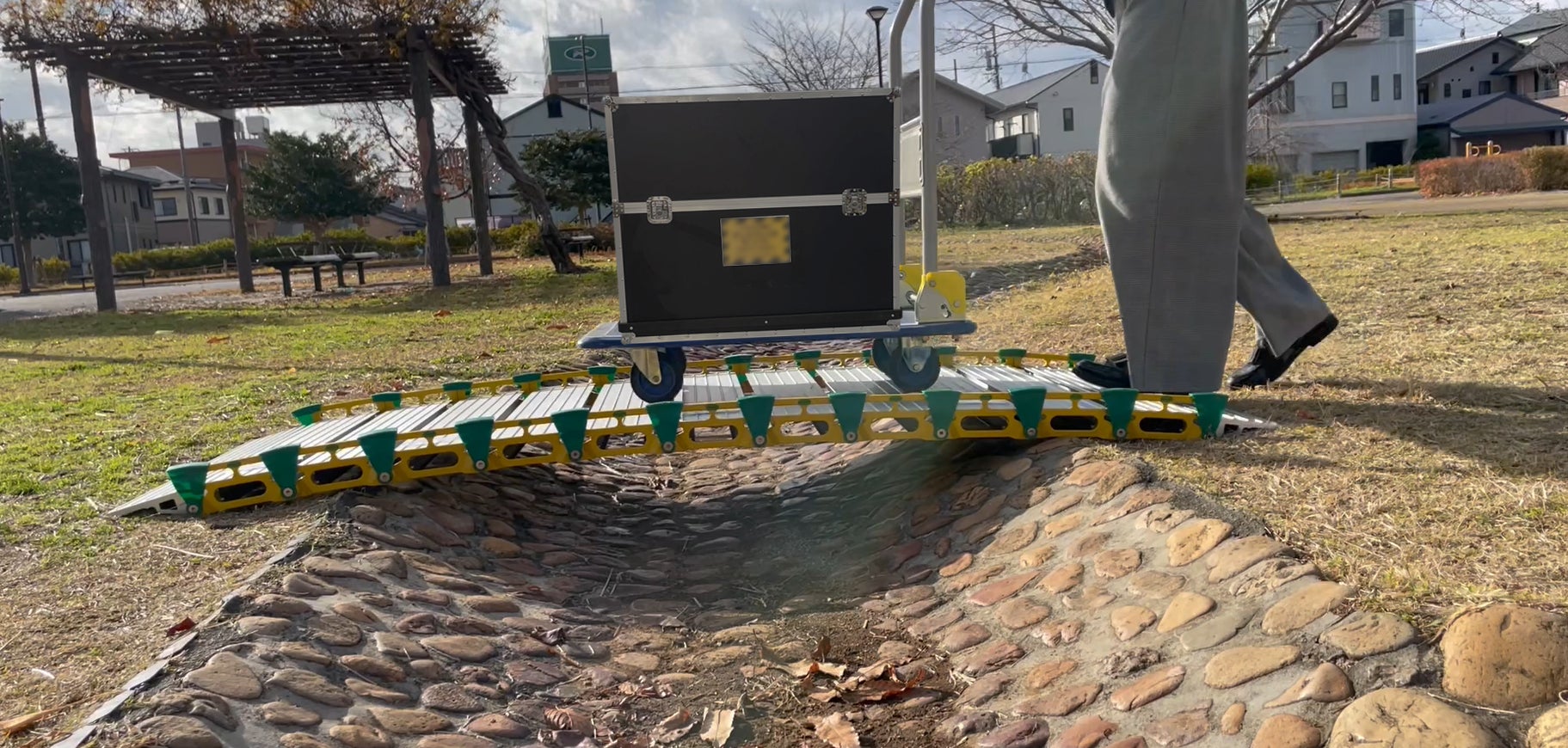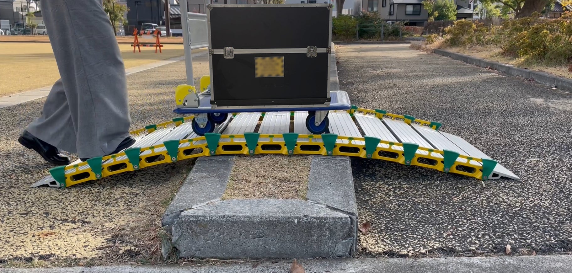 段差・溝・障害物もスムーズに通行可能にする持ち運び自在の“ロールスロープ・アクセス”に幅広タイプが新登場