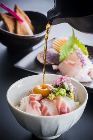右:宇和島地方発祥「宇和島風鯛めし」、左:松山市北条地区発祥「松山風鯛めし」