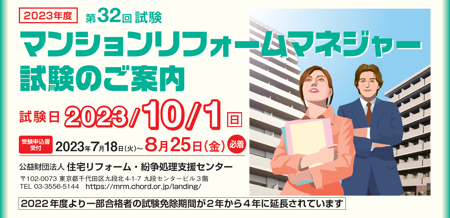 試験の詳細は、当財団の「マンションリフォームマネジャー試験」サイトを参照してください。