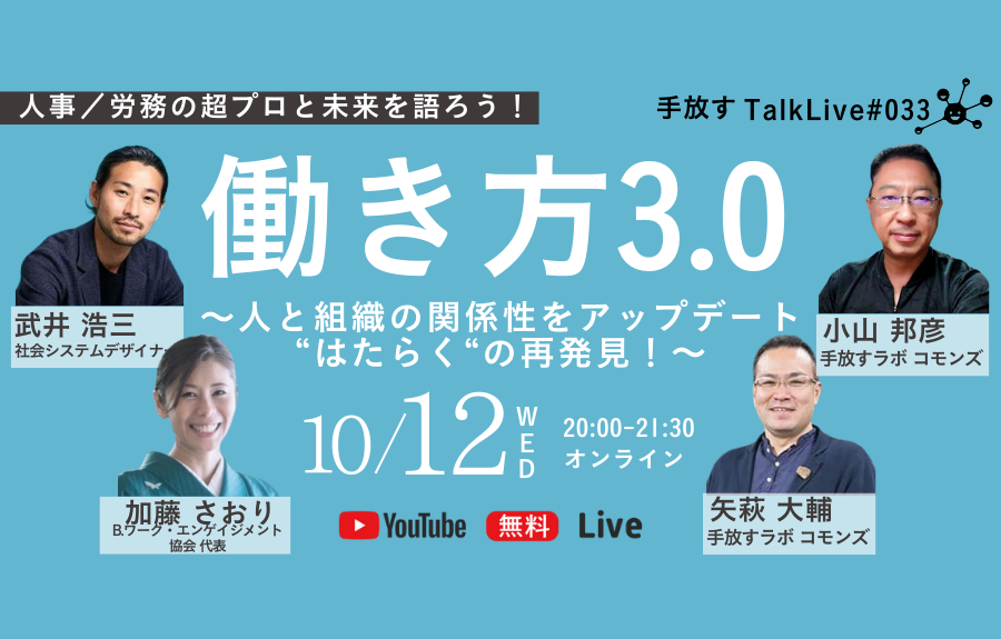 コモンズのおふたりを迎えて、トークライブ「働き方3.0」を10/12に開催!