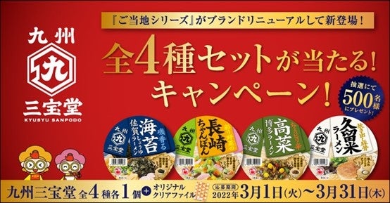 『九州三宝堂』全4種セットとオリジナルクリアファイルが当たるプレゼントキャンペーンを実施します。