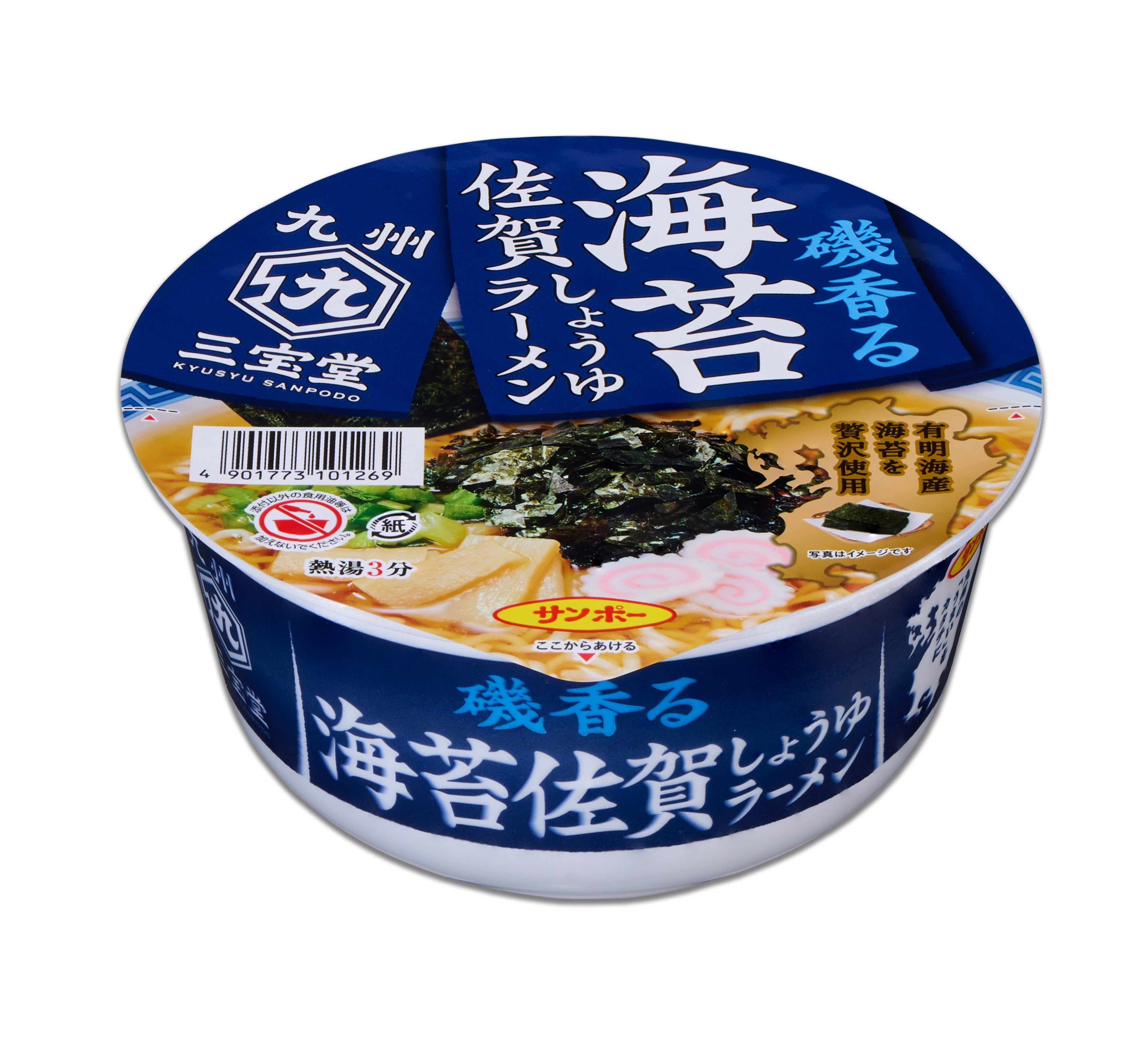 「焼豚ラーメン」でお馴染みのサンポー食品!『ご当地シリーズ』がブランドリニューアルし、新たに『九州三宝堂』に!『九州三宝堂』新商品「海苔佐賀しょうゆラーメン」発売