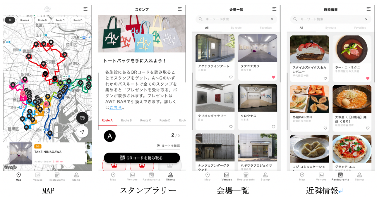 「japan ART EX」は、アートウィーク東京をもっと楽しむことができるアプリです。スタンプラリーへの参加や、MAPによるAWT BUSのルート確認、参加施設の情報入手などを無料で提供いたします。今後は、さらに多くの方にアートの魅力を広げるために、展覧会やフェアといったアート体験のサポートや、役立つアート情報の提供を通じて、国内の他のアートイベントも楽しめるアプリとしての展開を予定しています。