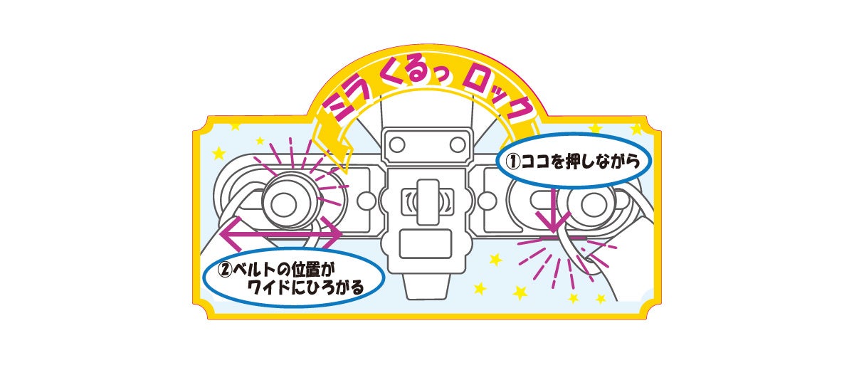 「ミラくるっロック」「ミラクルベルト」「ミラクル背カン」を合わせた3つの機能