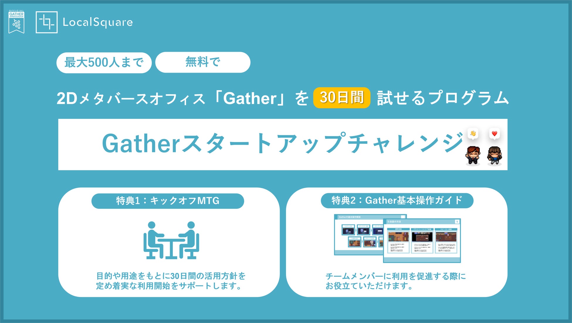 30日間Gatherを無料で試せる「Gatherスタートアップチャレンジ」を実施します。
