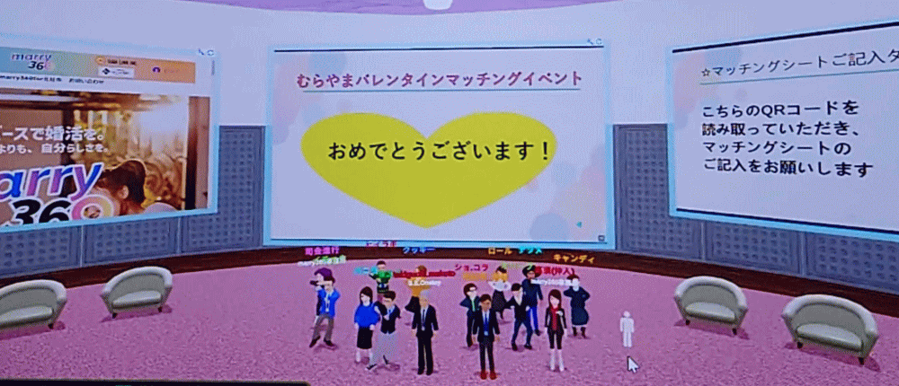 運営サポートに一般社団法人NA-Cord協会の3名の仲人がアバターとなってイベントをサポートしていただいたことで、初めは緊張気味だった参加者も、仲人の巧みな話術で打ち解け、大盛況に終わりました。