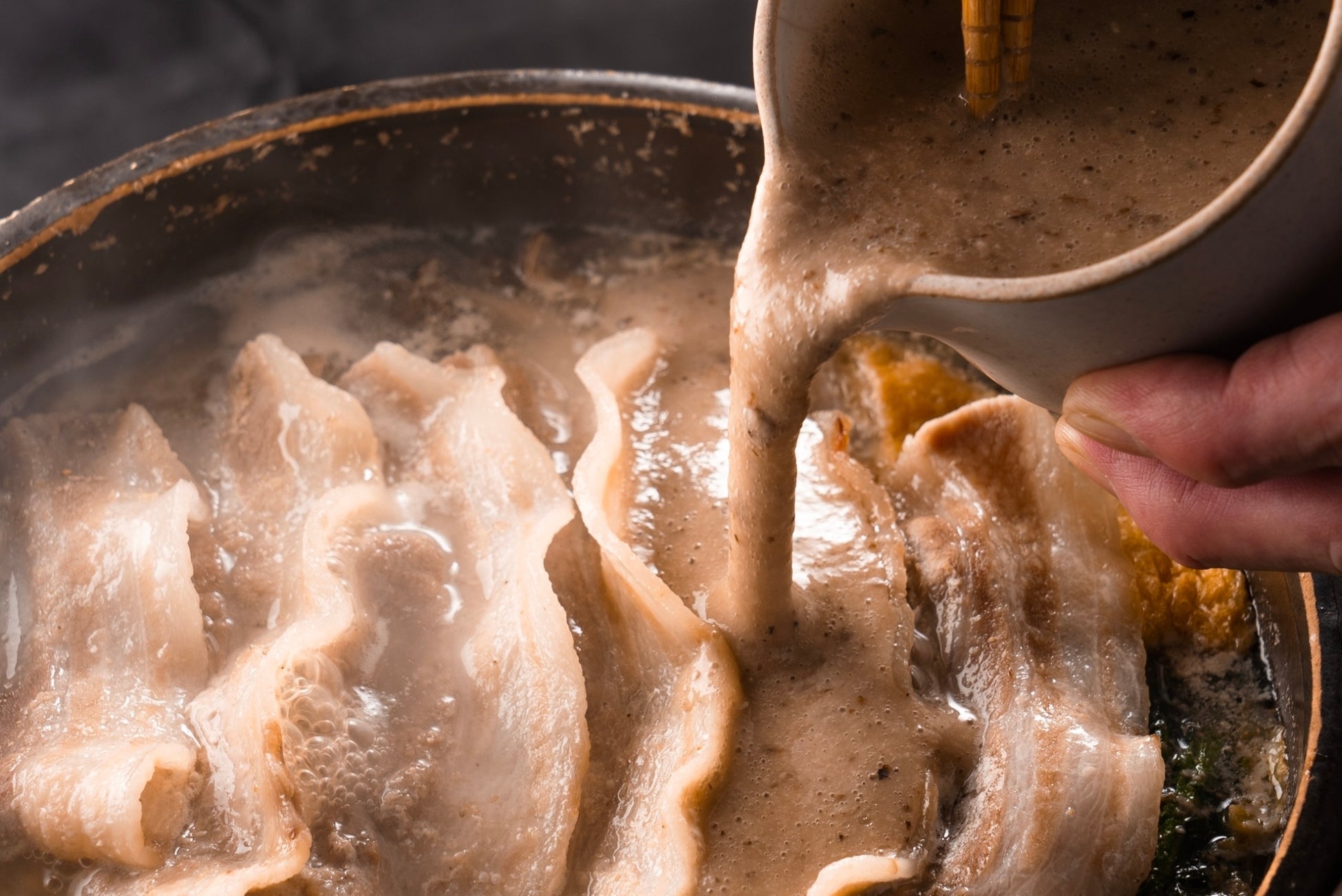今回、ご当地鍋フェスティバルで当店が今年出品するのは、美容と健康を気にする女性に大人気のメニューです。ごま豆乳の甘みのある出汁の中に豚バラのうまみのある脂が溶け込んだ状態に厳選された山口県産の自然薯を流しこんでのご提供!自然薯の風味と粘り気の中から感じるごま豆乳の甘み、豚バラのうまみをお楽しみください。